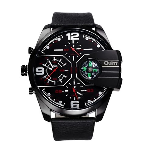 OIDEA Montre Homme Bracelet Réglable: Montre Manchette Rond Alliage Bracelet Cuir PU Trois Fuseaux Horaires Adjustable avec Décoration de Boussole - Cadeau Anniversaire Fete des Pères