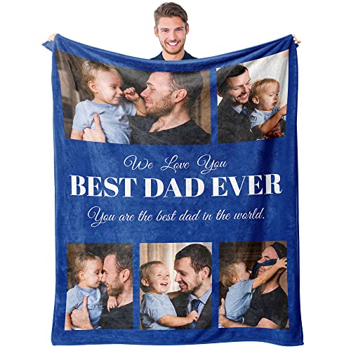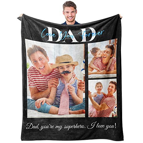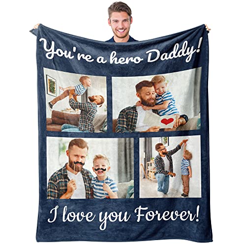 Easycosy Cadeau Fete des Peres Original -Plaid Papa Photo Couverture Personnalisée- Idée Cadeau Fête des Pères 2024 Cadeau Anniversaire Papa Cadeau Personnalisé pour Papa,Beau-Père Nouveau Père