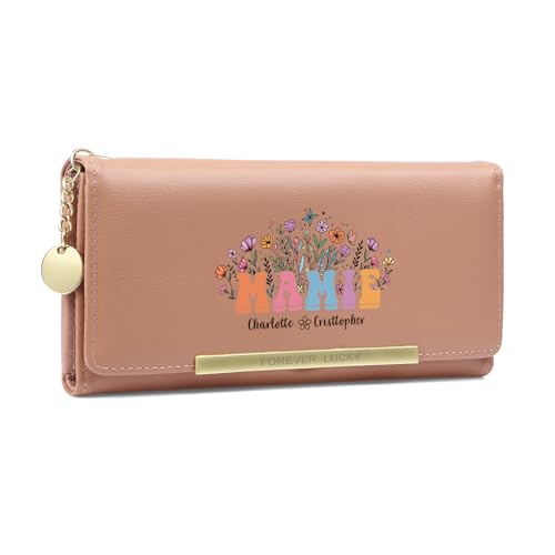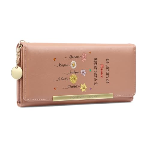 Portefeuille Femme Cuir PU Personnalisé avec Nom Porte Monnaie Porte-Monnaie Femme Cadeau pour Mamie Fête des Mères Anniversaire Noël (Style 2-4 Noms)