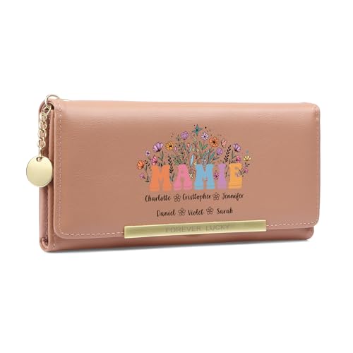 Wamantic Portefeuille Femme Cuir PU Personnalisé avec Nom Porte Monnaie Porte-Monnaie Femme Cadeau pour Mamie Fête des Mères Anniversaire Noël (Style 2-5 Noms)