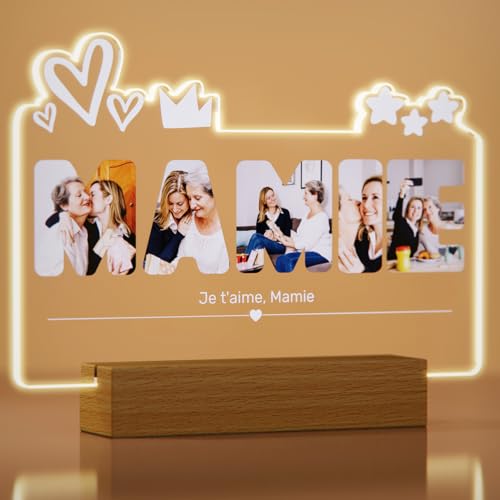 YUYUGO Cadeau Fête des Mamies Personnalisé - MAMIE Lampe Personnalisée avec Photo - Lumineux Cadre Photo Personnalisé - Idée Cadeau Mamie Fete des Mamies Original