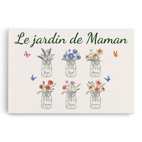 Cadeau Plus Toile Personnalisé - Le Jardin de Maman Mamie - Toile de fond personnalisable, toile personnalisée avec prenom, cadeau maman personnalisé, cadeau personnalisé fete des meres (6 Enfants)