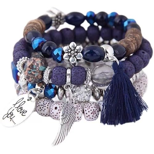 Generisch Inoxydable Bracelet Amoureux Pour Bracelet Anneaux bracelet bijoux cadeau de fête Mamie Bracelet Bracelet Maman Avec Bijoux (Blue, One Size)