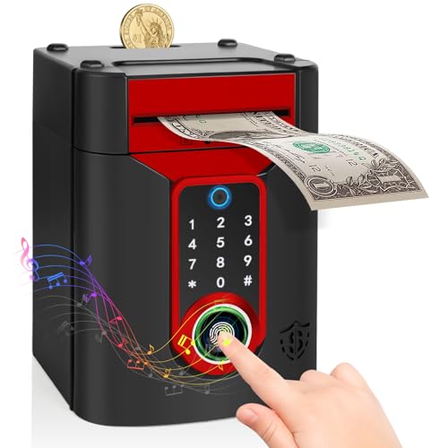 Highttoy Tirelire Électronique Enfant avec Écran Tactile et Empreinte Digitale, ATM Coffre-Fort Enfant avec Code, Cadeau Garçon Fille 3-12 Ans, Rouge Noir