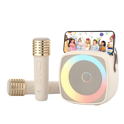 Karaoké Enfants avec 2 Microphone, Cadeau Fille 3-12 Ans Microphone Bluetooth pour Garçons et Filles Portable Machine Karaoké avec Design Support pour Téléphone Système PA pour Les fêtes à la Maison