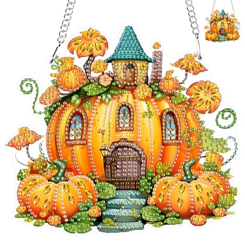 NAIMOER Citrouille Maison Diamond Painting Pendentif Peinture Diamant Fleurs Enfants Adultes Ornement Suspendu Kit de Bricolage pour Cadeau Fille 7-12 ans Décoration Murale