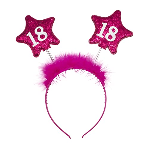 Decoraparty Serre-tête 18 ans, Accessoire de Fête et Soirée pour Anniversaire Fille Majeure avec Numéro, Cadeau Humour, Chiffre 18, Rose Fuchsia