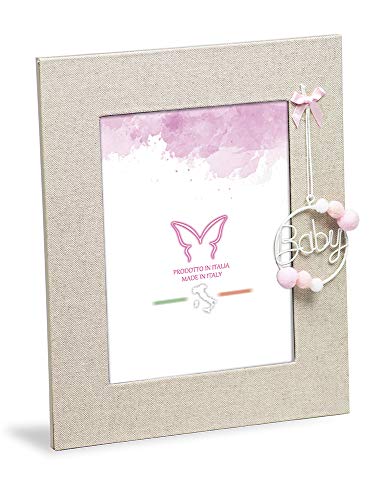 Mareli Cadre photo de table pour fille 20 x 23 cm, 5 en tissu lin avec décorations roses, structure arrière en bois, dimensions de la photo 13 x 18 cm. Idée cadeau.