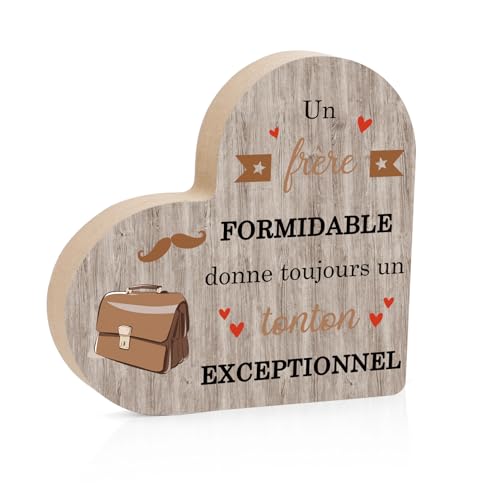 Cadeau Tonton Noel Annonce Grossesse Tonton, Décoration Planche en Bois en Forme de Coeur Balancier Homme Cadeau pour Frere Cadeaux de Naissance Frere Idee Cadeaux Noel Original