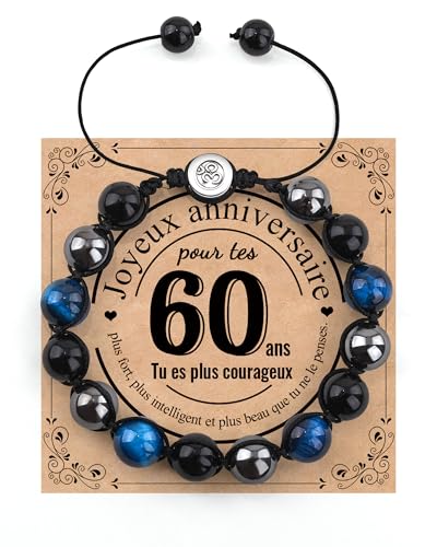 VGWON Bracelet Anniversaire 60 Ans, Bracelet Homme, Cadeau 60 Ans Garcon, Joyeux Anniversaire, Cadeaux D'anniversaire Original, Cadeau pour Fils Frère Neveu Ami Pierre Naturelle