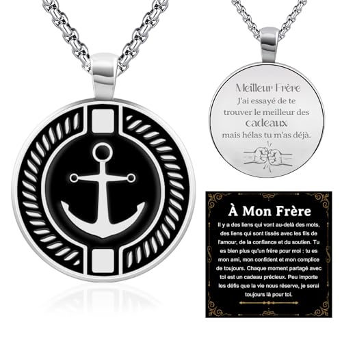 FANCIBAND Cadeau Frere Collier Homme Acier Inoxydable avec Pendentif Ancre, Cadeaux Frère Anniversaire de Fin d'éTudes Rentrée Scolaire Cadeau de Noël