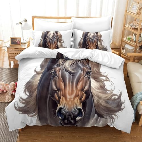 KQZJXNRPHG Horse Portrait Watercolor 3D Housse De Couette Animaux Parure De Lit Microfibre Cadeau Garçon 10-12 Ans Ultra Doux Single(135x200cm)