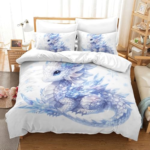 Cute Ice Dragon Art 3D Housse De Couette Microfibre Cadeau Garçon 10-12 Ans Parure De Lit Ultra Doux Single(135x200cm)