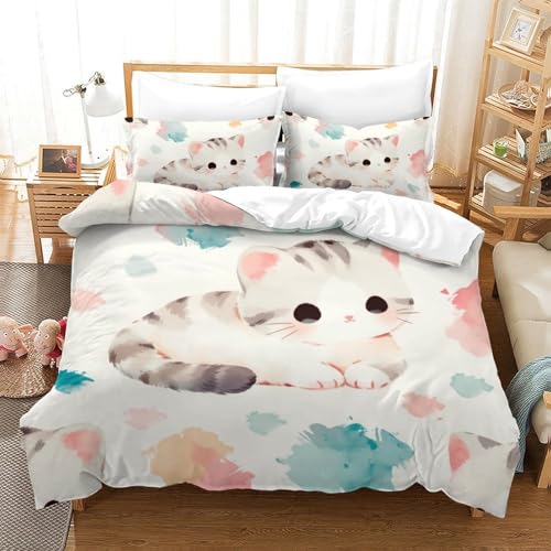 KQZJXNRPHG Pastel Kitten Pattern 3D Housse De Couette Animaux Microfibre Cadeau Garçon 10-12 Ans Parure De Lit Ultra Doux Super King(260x220cm)