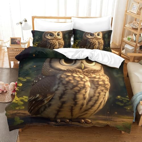 Forest Owl Art 3D Housse De Couette Enfant Cadeau Garçon 10-12 Ans Microfibre Ultra Doux Parure De Lit Single(135x200cm)