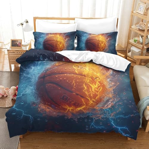 Fire Water Basketball Art 3D Housse De Couette Enfant Cadeau Garçon 10-12 Ans Microfibre Ultra Doux Parure De Lit Super King(260x220cm)