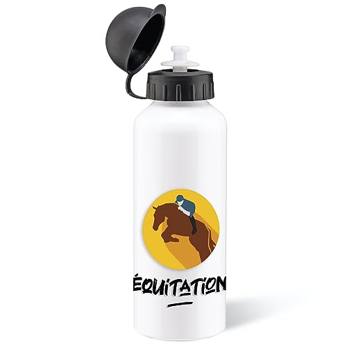 Gourde Equitation Sport Cheval 500ml Bouteille d’Eau Aluminium Réutilisable Ecologique avec Tétine. Idée Cadeau Original Humour Homme Femme Enfant Ami Collègue Utile Anniversaire Noël