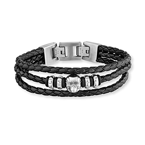 SAVE BRAVE® Bracelet pour homme en cuir tressé noir avec perles en acier inoxydable, extension grâce à la fermeture à rabat, bracelet comme cadeau pour JGA, anniversaire, Noël avec belle boîte cadeau,