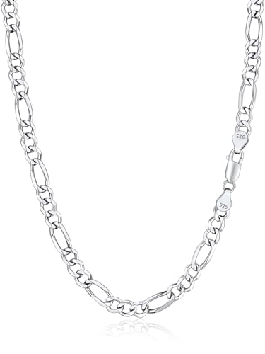 Silvora Chaine Figaro Argent 925 Homme 50 cm Collier Garcon 5mm Massif pour Pendentif Longue Ras du Cou Maille Fine Bijoux Cadeau Ado 18 ans Jeune Adolescente Enfant Saint Valentin