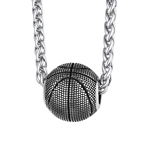 FindChic Collier Basketball Acier Homme Pendentif Enfant Garcon Collier Femme Sportif Acier Inoxydable 55cm Cadeau Copain Petit Amie Ado Jeune Adolescente Adult