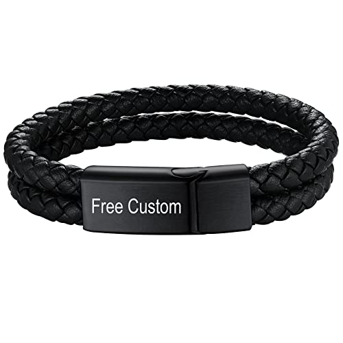 Bracelet Homme Cuir Tressé 21 cm Large Fermoir Magnétique Gourmette ID Identité Enfant Garcon Chaine Poignet Acier Inoxydable Personnalisable Gravure Cadeau Copain Ado Jeune Adult Adolescente