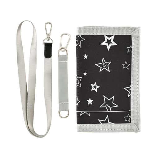 Portefeuille de voyage à trois volets noir et argenté pour homme - Cadeau pour jeune - Portefeuille robuste unique pour homme - Avec cordon - Billetera Minimalista para hombre, étoile argentée noire,