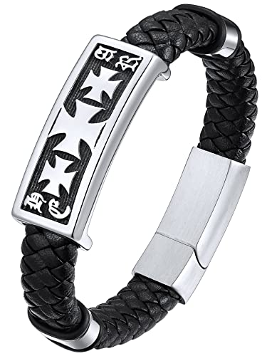 ChainsHouse Bracelet Homme Cuir 19 cm Cadeau Homme Templiers Croix Acier Gourmette Garcon Juif Amulette de Protection Fermoir Magnétique Cadeau Copain Petit Ami Jeune Adult