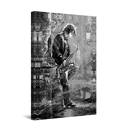 Startonight Impression Sur Toile Jeune Homme Jouant Sur Le Saxophone, Art Encadré Imprimée Tableau Motif Moderne Décoration Tendu Sur Chassis Prêt à Accrocher 60 x 90 cm Idée Cadeau Élégante