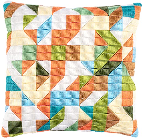 Vervaco Kit Complet Broderie Point Lancé Coussin Decoratif TRIANGLES DIY Debutant Adulte Decoration Manuelle Cadeau Loisir Creatif Maison ca. 40 x 40 cm Embroidery