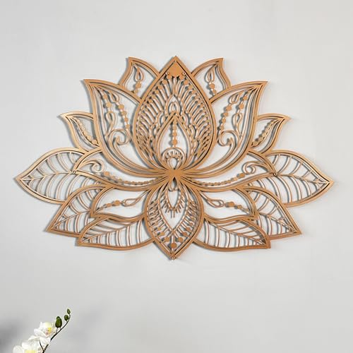 Colorfull Worlds Décoration murale en métal Mandala 3D | Décoration de fleur de lotus pour la maison|Cadeau de pendaison de crémaillère | Décoration de bureau|Cadeau de Nouvel An (91 x 59 cm, cuivre)