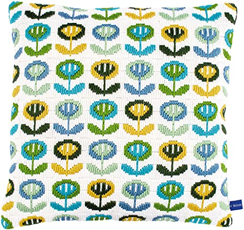 VERVACO Kit Complet Broderie Point Lancé Coussin Decoratif FLEURS DIY Debutant Adulte Decoration Manuelle Cadeau Loisir Creatif Maison ca. 40 x 40 cm Embroidery