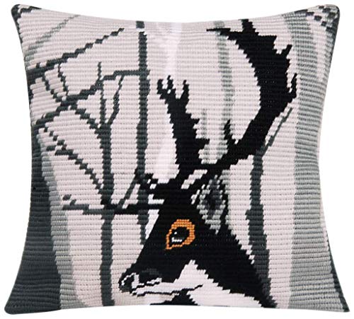 Vervaco Kit Complet Gobelin Oblique Broderie Point Lancé Coussin Decoratif HUGO DIY Debutant Adulte Decoration Manuelle Cadeau Loisir Creatif Maison ca. 40 x 40 cm Embroidery
