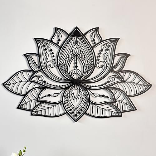 Colorfull Worlds Décoration murale en métal Mandala 3D | Décoration de fleur de lotus pour la maison |Cadeau de pendaison de crémaillère | Décoration de bureau Cadeau de Nouvel An (91 x 59 cm, noir)