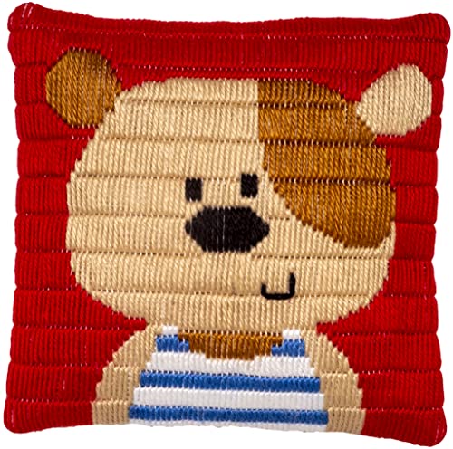 Vervaco Kit Complet Broderie Point Lancé Coussin Decoratif PETIT OURS DIY Debutant Adulte Decoration Manuelle Cadeau Loisir Creatif Maison ca. 25 x 25 cm Embroidery