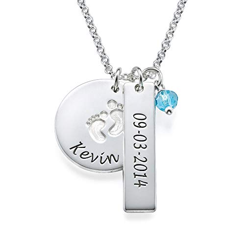 MyNameNecklace MYKA Collier Pieds de Bébé avec Pendentif Nouveau Bijou Maman en Argent 925 ou Plaqué Or - Personnalisé Gravé Sur Mesure Cadeau Pour Femme, Elle, Maman (Argent 925)