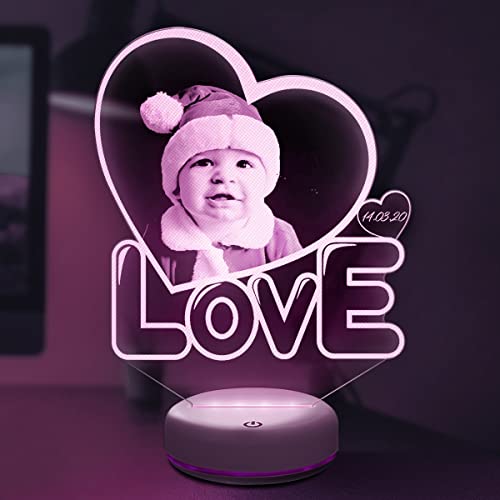 Lampephoto.fr Lampe photo Personnalisée love cœur par gravure laser, idée Cadeau Fête des Mères, cadeau Maman Noël Cadeau Photo maman bébé naissance photo et Texte Personnalisable (cœur love)