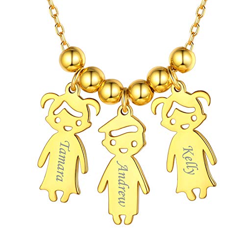 ChicSilver Collier Maman Plaqué Or avec Enfants Prénom Personnalisé,Pendentifs 3 Petits Bébé Garçon/Fille Personnalisable en Argent avec Chaîne Réglable 45+5cm,Bijoux Cadeau Anniversaire Maman Femmes