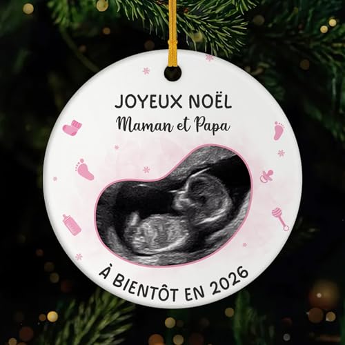 Cadeau Plus Ornement Personnalisé - Chers Papa Et Maman - Déco Noel personnalisé, Boule de Noel personnalisée Photo, Échographie bébé, Mon Premier Noel (Modèle #3)