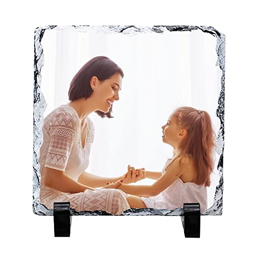 IBLUELOVER Lithographie Personnalisé Photo Image Personnalisable en Pierre Ardoise Personnalisé Cadres Photo Plaque de Support DIY Décoratif Maison Mariage Cadeau Père Maman Bébé Noël Anniversaire