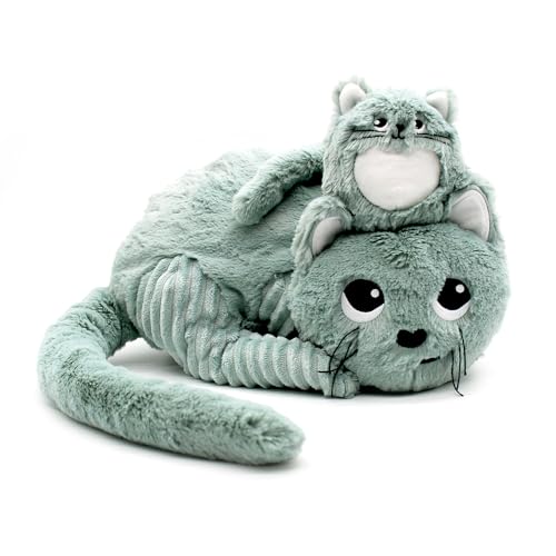 Les DÉGLINGOS - PTIPOTOS – Miaou Le Chat Maman bébé – Peluche Toute Douce – idéal Cadeau Naissance - Vert Menthe – 33cm