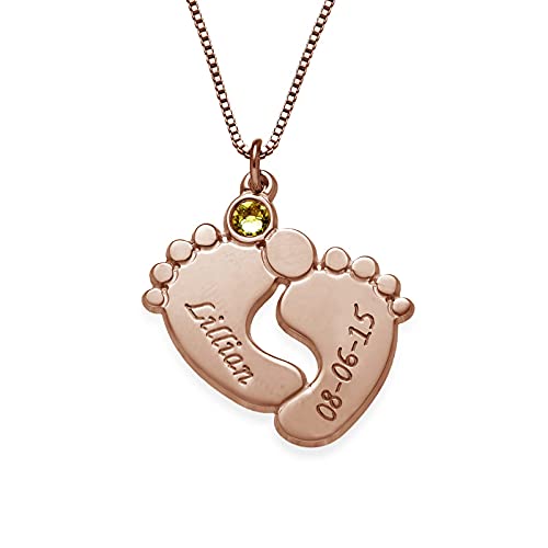 MyNameNecklace MYKA Collier Pieds de Bébé Personnalisés en Argent 925 ou Plaqué Or - Personnalisé Gravé Sur Mesure Cadeau Pour Femme, Elle, Maman (Argent 925 Plaqué Or Rose 18cts)