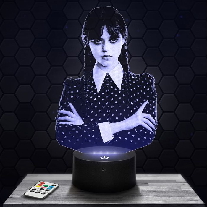 Lampe 3d _ Mercredi Addams - Accessoire Merch Cadeau Mercredi Addams - Veilleuse Led Tactile avec socle au choix TOP