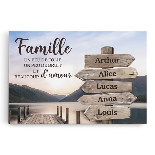 Cadeau Plus Toile La Famille Personnalisée, Cadeau famille personnalisé, Cadeau Famille Noël, Toile famille personnalisé, toile personnalisée prénom (Modèle #5)