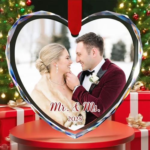 Ornement de Noël 2025 Personnalisé avec Photo - en Verre Cristal (Forme Boule ou Cœur) - Gravure Texte/Date - Cadeau Personnalisé pour Famille, Couple ou Animal de Compagnie (Ornement Personnalisé)