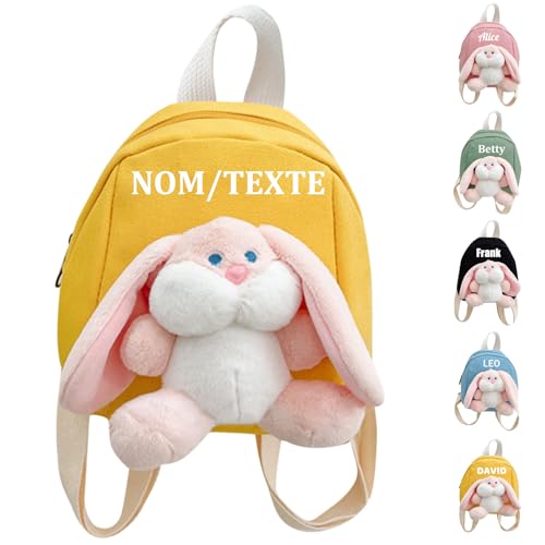 Sac a Dos Enfant Personnalisé avec Nom Brodé, Sac Personnalisable Enfant pour Garçon Fille, Sac a Dos Bebe en Mignon Lapin, Cadeau Personnalisé Bebe, pour Rentrée Scolaire Maternelle (Jaune)