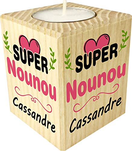 Bougie personnalisée Super Nounou – Porte Bougie en Bois personnalisé avec Le prénom – Cadeau de Fin d'année pour remercier la nourrice de Votre Enfant ou bébé – Cadeau Fin de contrat
