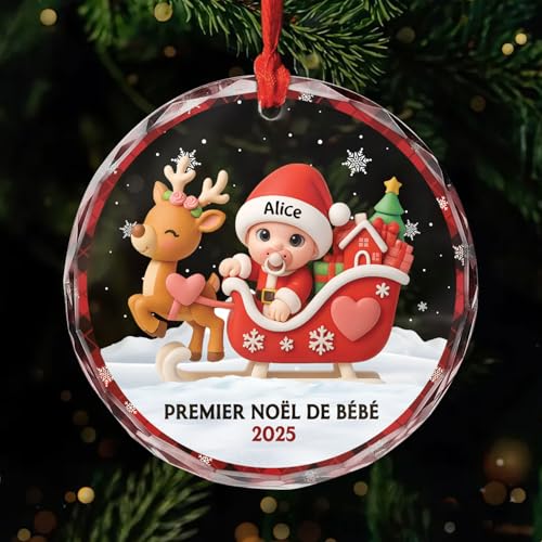 Cadeau Plus Ornement Personnalisé - Premier Noël De Bébé en Verre - Boule de Noel Premier Noel, Mon Premier noël, Boules de Noel personnalisées, Ornement Personnalisé pour Nouveau-né (Modèle #1)