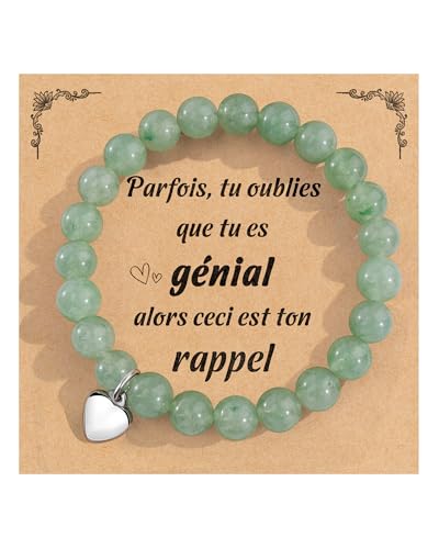 CheersLife Cadeau Femme Bracelet Pierre Naturelle Femme avec Pendentif en Cœur Idee Cadeau Anniversaire pour Maman Fille Sœur Amie Couple Collègues - Jade
