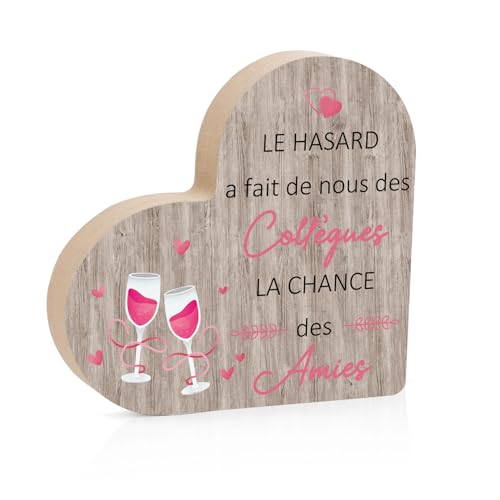 Cadeau Collegue de Travail Cadeau Départ Collègue Femme Homme, Décoration Planche en Bois en Forme de Coeur Balancier pour Collegues, Cadeaux Noel Cadeaux Retraite Cadeaux Depart Collegue