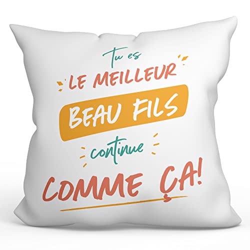 Mugffins Coussins/Oreillers avec Rembourrage pour Beau-Fils/Gendre - 40x40 cm - en Français - Cadeau Original pour Beau-Fils - Tu ES Le Meilleur Continue comme ça